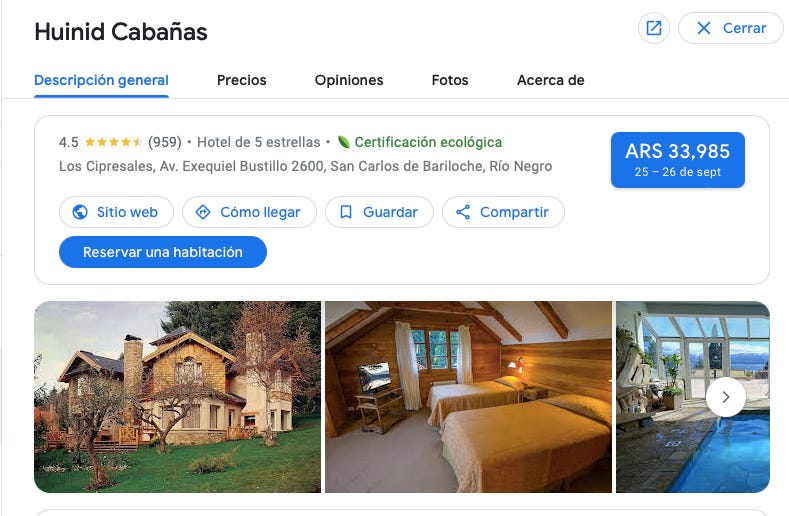 Google viajes por ejemplo tiene un filtro de certificación ecológica para que al buscar hoteles los viajeros puedan encontrar una estancia sustentable. Una vez que apliques el filtro, cada hotel bajo esa categoría debería tener una etiqueta en color verde al lado de su calificación, como este: